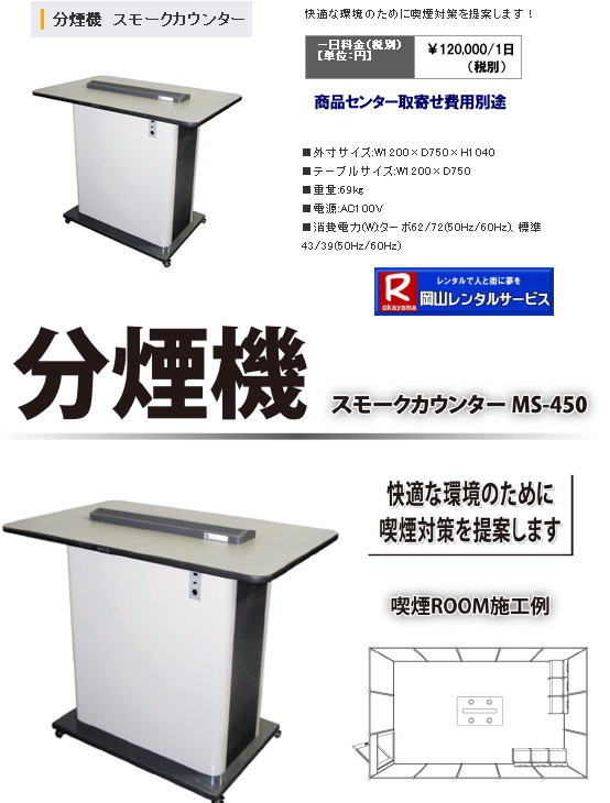 分煙機のレンタル(スモークカウンター)・レンタル