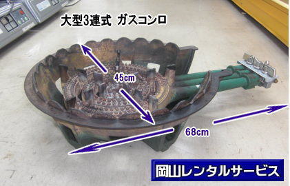 ●ガスコンロ 2重式(定番) プロパンガス仕様 EB-024 サイズ:W340×D530×H120 ガス消費量:LPG5880kcal 0.49kg/時間 ●レンタル料金:¥1,500/2泊3日まで(税別)