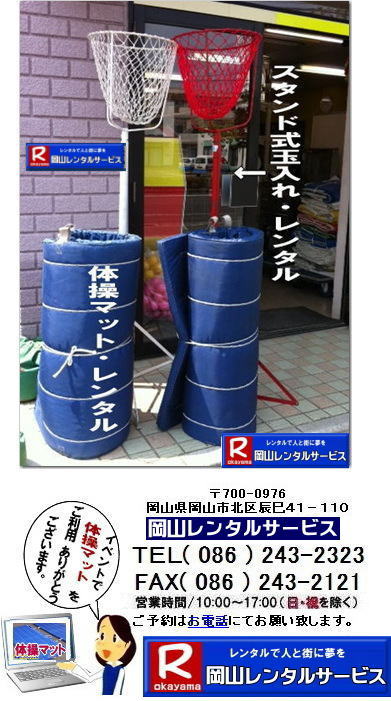 ●岡山での屋内用体操マット(屋内用)のレンタルは岡山レンタルサービス ●サイズ:W 1750×D900×50 ●色:青・緑・黄 ●思わず前転したくなる体操マットです。(笑) ●レンタル料金→¥12,000/1日(税別) ●商品センター取寄せ商品につき別途・取寄・返却運賃が必要です。