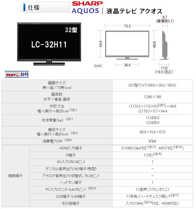 激安液晶テレビ(32インチ)レンタル