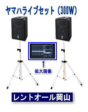 ●岡山・イベントでの大型PAレンタルはレントオール岡山へご相談下さい。 ●屋外での催し物や屋内式典等でご利用されています。 ●高性能な12チャンネルミキサーに150W+150W(4オーム)の大出力 ●スピーカー 150W+150W(スタンド付き)ヤマハBR12×2 ●有線ハンドマイク(スタンド付き)×1 ●イベント・式典・展示会での人気商品! ●また取り扱いも簡単!(コンセント差込・スイッチONで簡単設置) ●レンタル料金→¥25,000/2泊3日まで(税別)