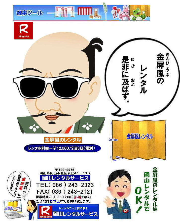 岡山地鎮祭用品レンタル 岡山竣工式レンタル 岡山式典用品レンタル 岡山レンタルサービス TEL086-243-2323