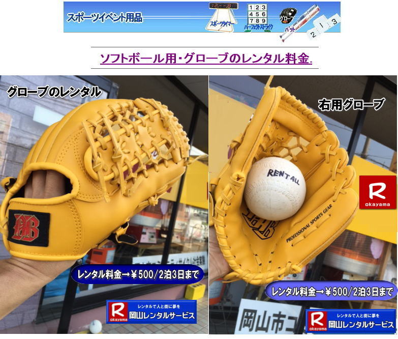 ソフト用グローブのレンタル・