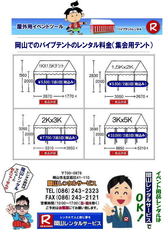 | 岡山テントのレンタル一覧(地鎮祭用テントレンタル) by ◆岡山でテントのレンタル・文字と画像クリックすると商品詳細が見れます。