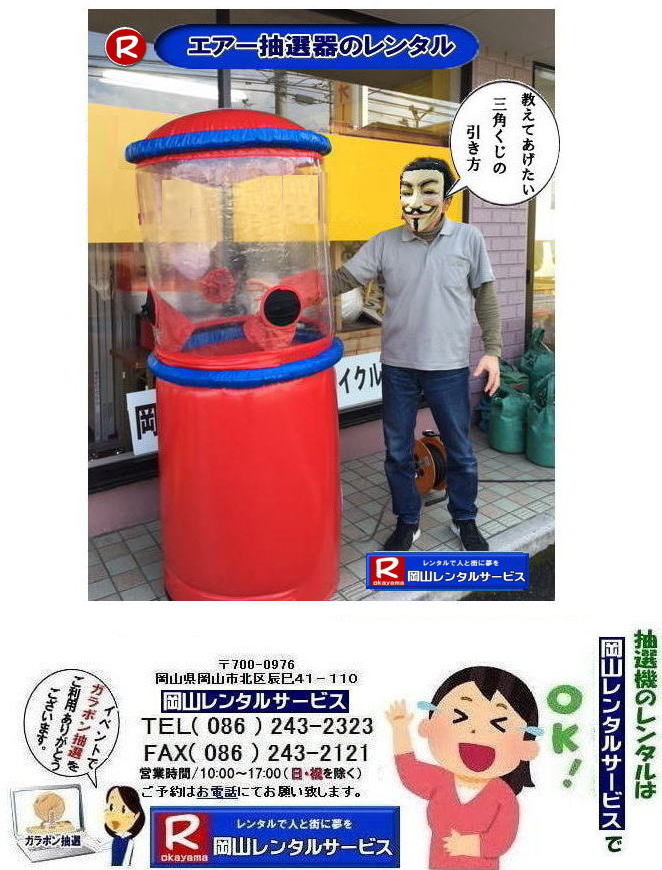 岡山抽選機レンタル| 抽選器レンタル料金| 岡山 ガラガラ抽選機| ガラポン抽選機 レンタル| 抽選器 レンタル 料金| 価格| 岡山| 高級抽選器レンタル| 新興式| 高級白木| SHINKO| 抽選機レンタル料金| 福引レンタル|ガラポン| 抽選器| 抽選会| 抽選器のレンタル| 福引大会| レンタル料金| イベント| 岡山レンタル| 福引レンタル| ガラポン| 抽選器| 抽選会 抽選器のレンタル| 福引大会| レンタル料金| イベント| 岡山レンタル|抽選器| 抽選機| レンタル|抽選器レンタル| 抽選機レンタル|抽選器レンタル| ガラポン抽選| ガラガラ抽選| 抽選器レンタル|抽選機| 岡山レンタルサービス|レンタル料金|福引レンタル| ガラポン|抽選器|抽選会| 抽選器のレンタル|福引大会レンタル料金| 安い| 抽選レンタル| 新興式抽選 | SHINKO| 抽選| 新興抽選レンタル| イベント用品レンタル| 岡山レンタルサービス|TEL086-243-2323|FAX086-243-2121|