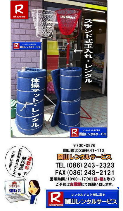 ●屋内用体操マットのレンタルは岡山レンタルサービスへ ●サイズ:W 1750×D900×50 ●色:青・緑・黄 ●思わず前転したくなる体操マットです。(笑) ●レンタル料金→¥12,000/1日(税別) ●商品センター取寄せ商品につき別途・取寄・返却運賃が必要です。
